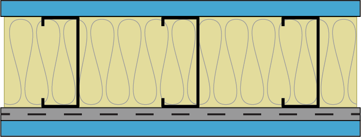 - 3-5/8” 15 mil steel studs, 16” o.c.