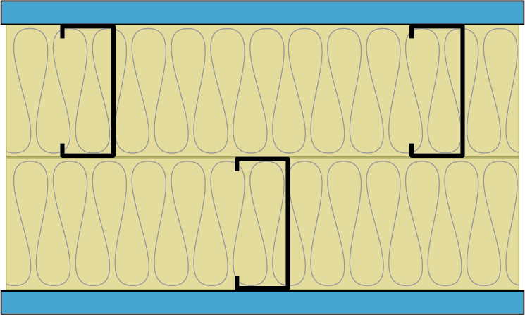 - 6-1/4” R-19 glass fiber insulation friction fit into stud cavity.