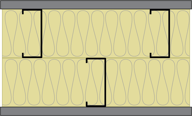 - Staggered-double row (no air space) 3-5/8” 15 mil steel studs, 16” o.c.