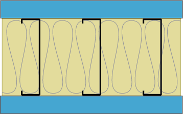- 6-1/2”, R-19 glass fiber insulation friction fit into stud cavity.