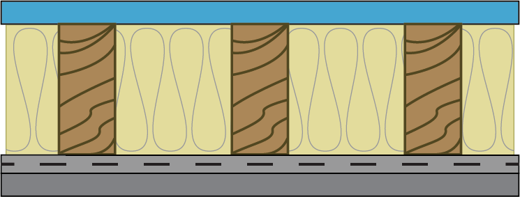 - 3-1/2”, R-13 glass fiber insulation friction fit into stud cavity.