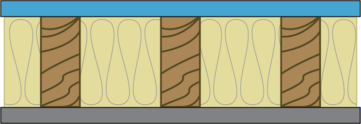 - 3-1/2”, R-13 glass fiber insulation friction fit into stud cavity.
