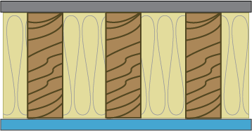 - 6-1/4”, R-19 glass fiber insulation friction fit into stud cavity.